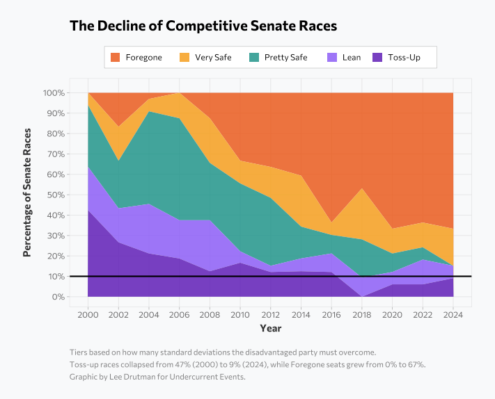 Presidential vote now determines 98% of House outcomes. One-dimensional partisan conflict is authoritarian-friendly territory. Could fusion voting…